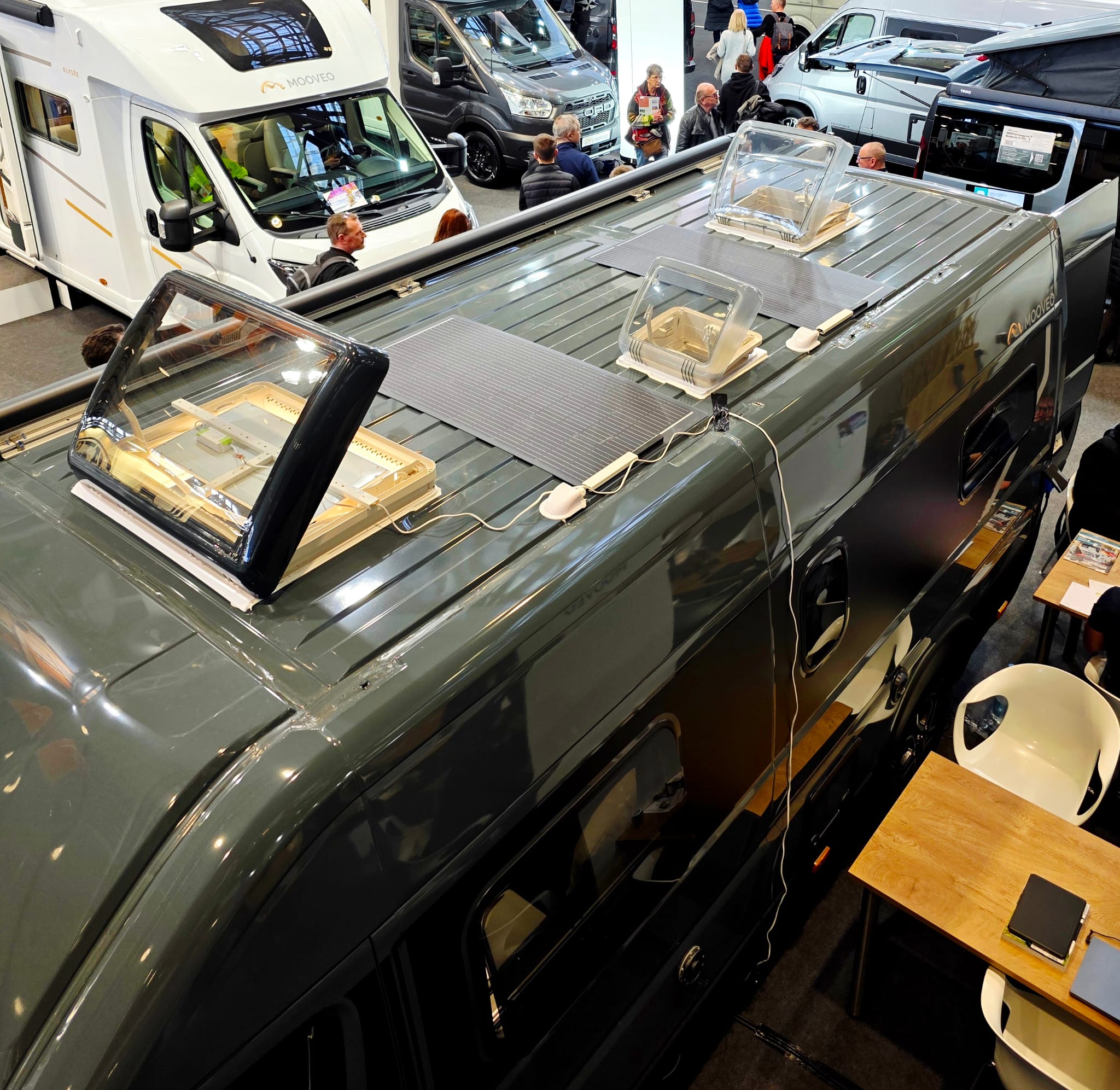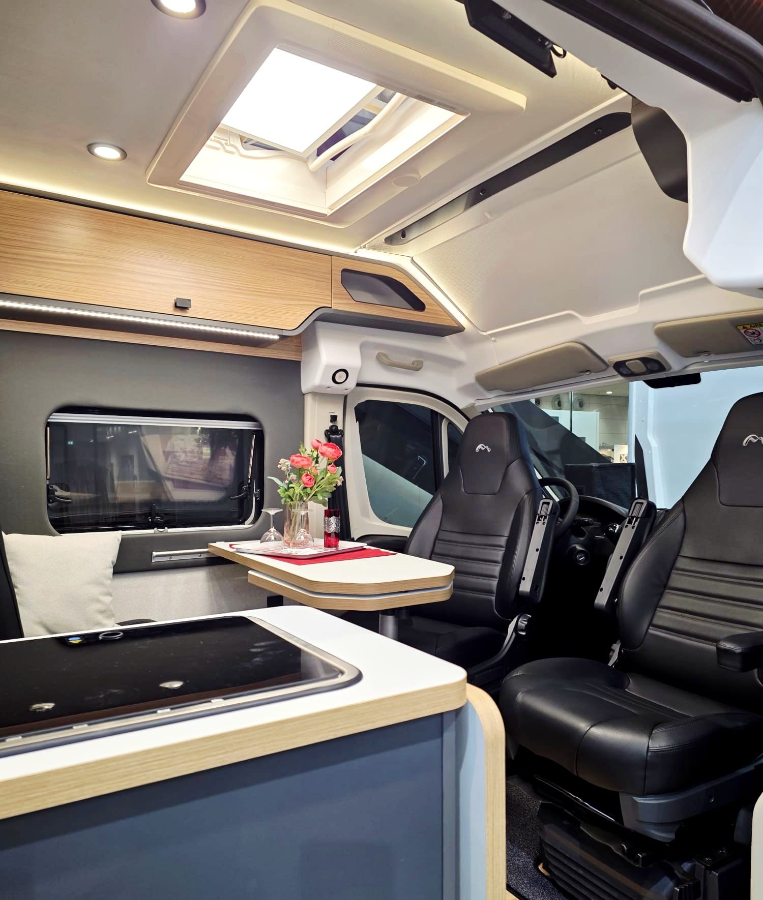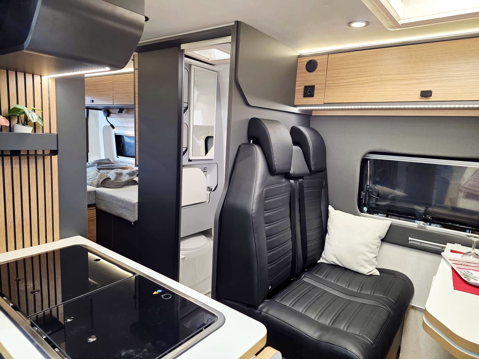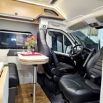 Floh überzeugt mit einer Gesamtlänge von 6,36 m. Diese ermöglicht Längsbetten ohne an Platz an der Sitzgruppe einsparen zu müssen. Das großzügigere Raumgefühl überrascht nicht nur uns, sondern auch die Mieter. Wobei die angenehme Breite von „nur“ 2,05m bleibt. Auch enge Straßen sind so keine Herausforderung mehr. Und besonders schön ist auch die Sonderedition mit mehr Stehhöhe.