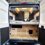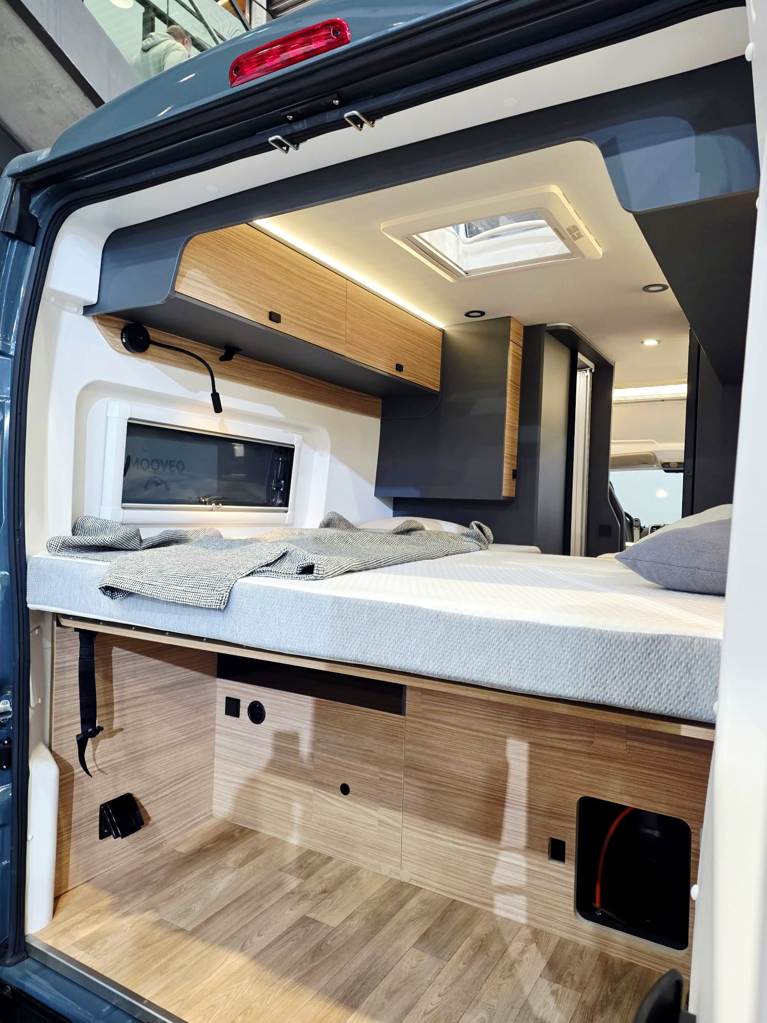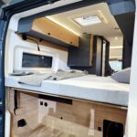 Das große Doppelbett garantiert einen erholsamen Schlaf und verführt, dank der großen, flexiblen Liegefläche, auch zum Kuscheln. Durch die Längsbetten muss keiner über den anderen steigen, falls er in der Nacht einmal auf’s „stille Örtchen“ muss. Der getrennte Tellerlattenrost (bei Bedarf könnten auch die Fahrräder hinten stehend transportiert werden) garantiert auch dem anspruchsvollen Schläfer einen erholsamen Schlaf.  Und: bei geöffneter Hecktüre könnt ihr im Bett die frische Luft und Landschaft genießen. Camperfeeling pur!!! Natürlich sind auch Fliegengitter, ein Bildschirm mit 4 G -Router, Außendusche u.v.m. vorhanden 😊.